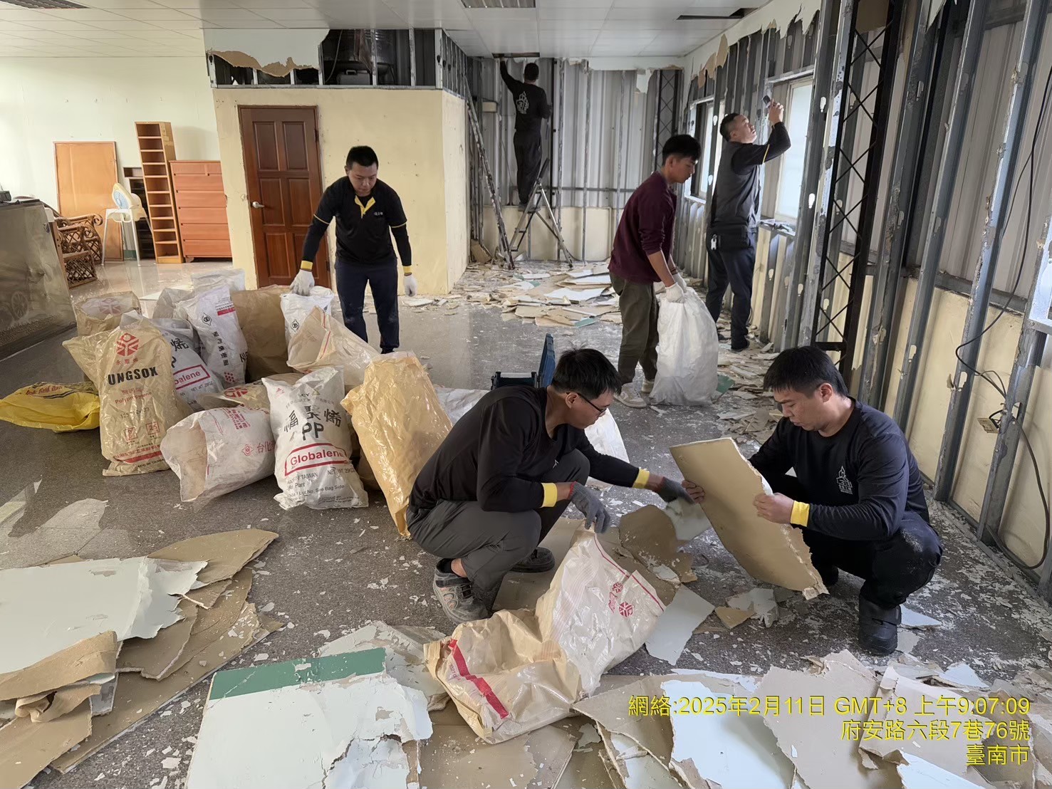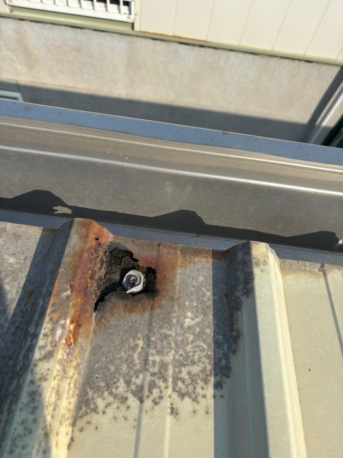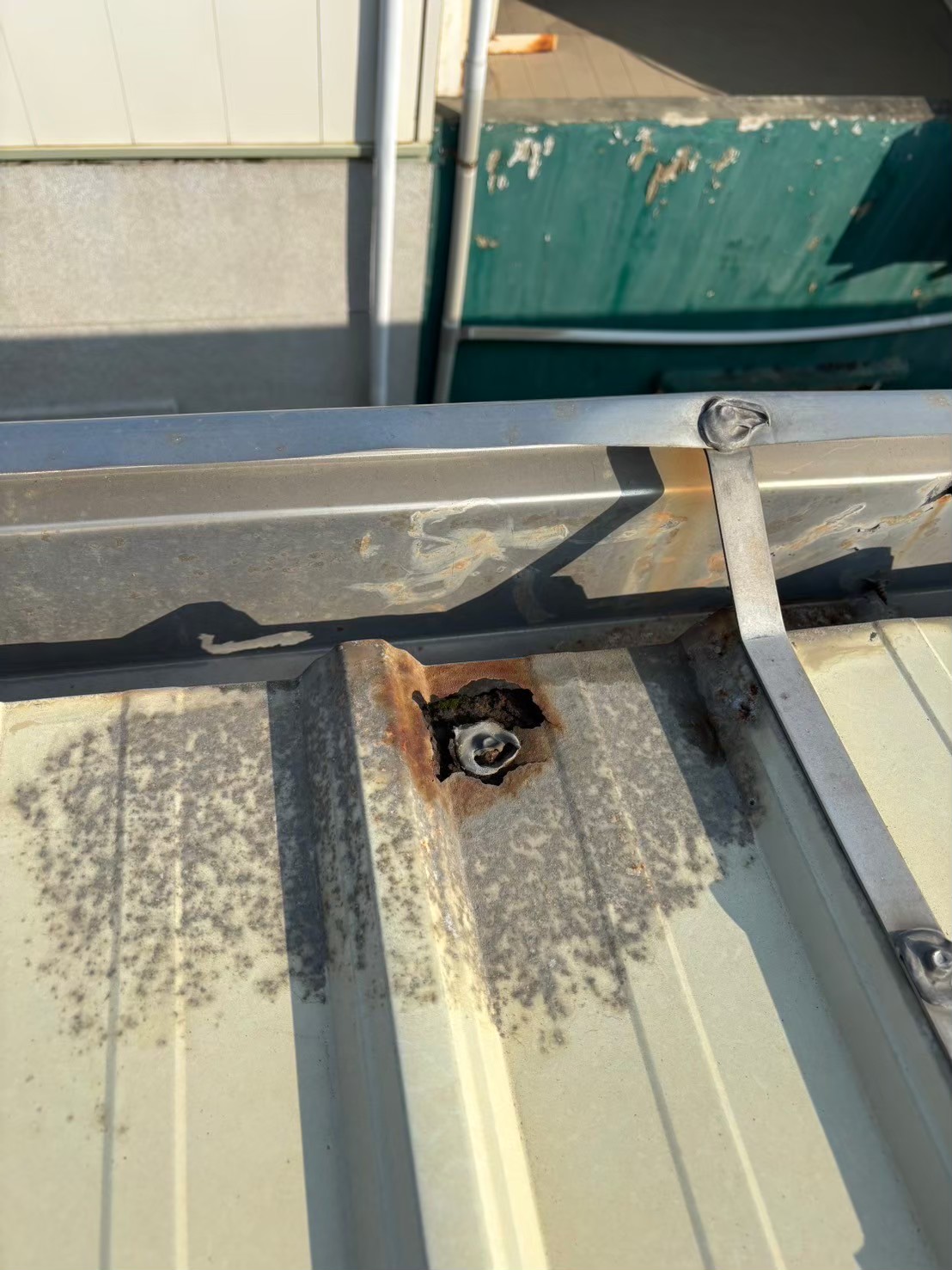 業主原本以為濕氣重 導致裝潢牆發霉破損 想裝潢板全拆除換新 拆除後團隊細心發現 骨架有水痕爬上頂樓 結果浪板螺絲孔鏽蝕 導致漏水,告知業主 直接安排浪板補強。